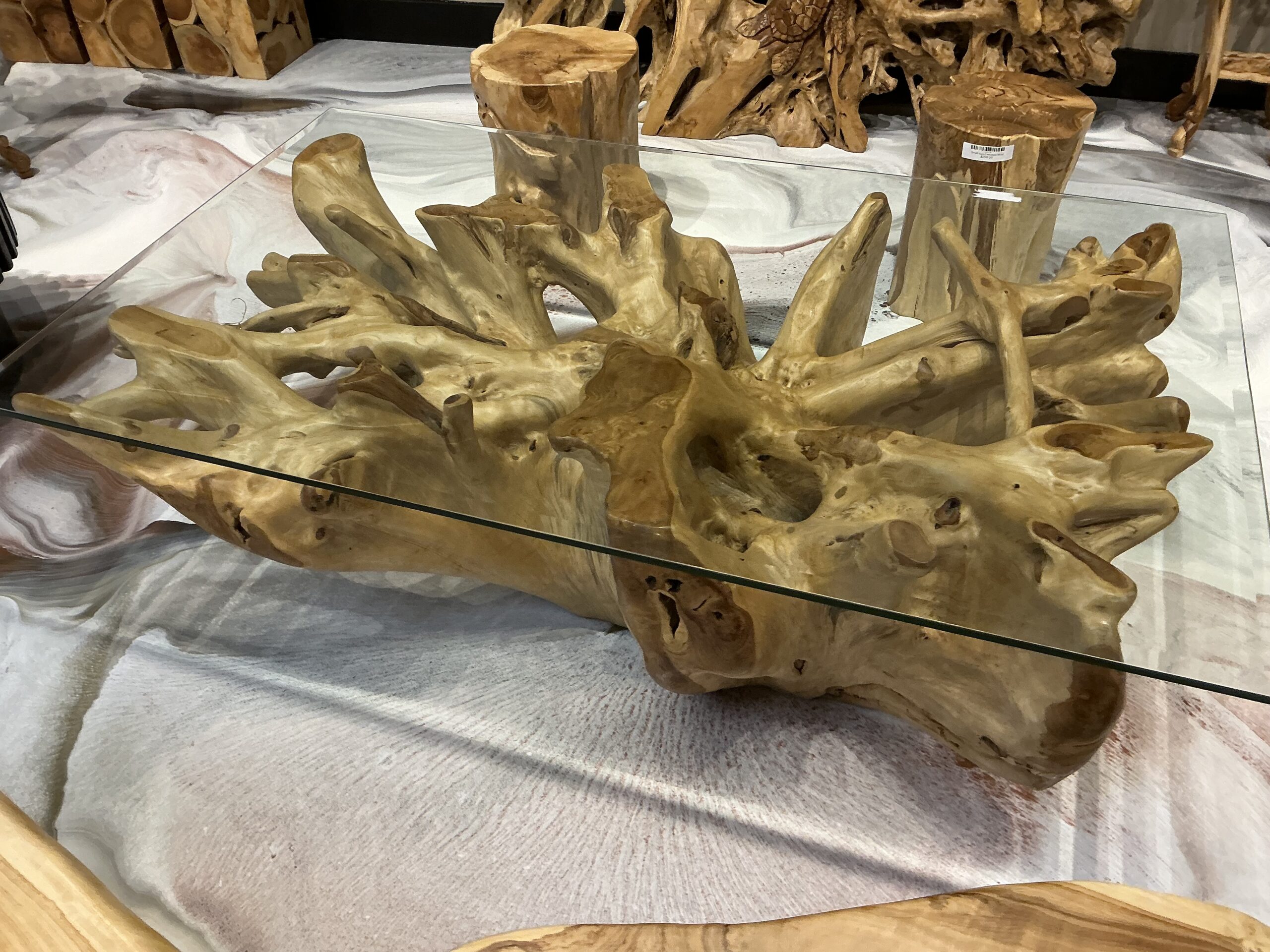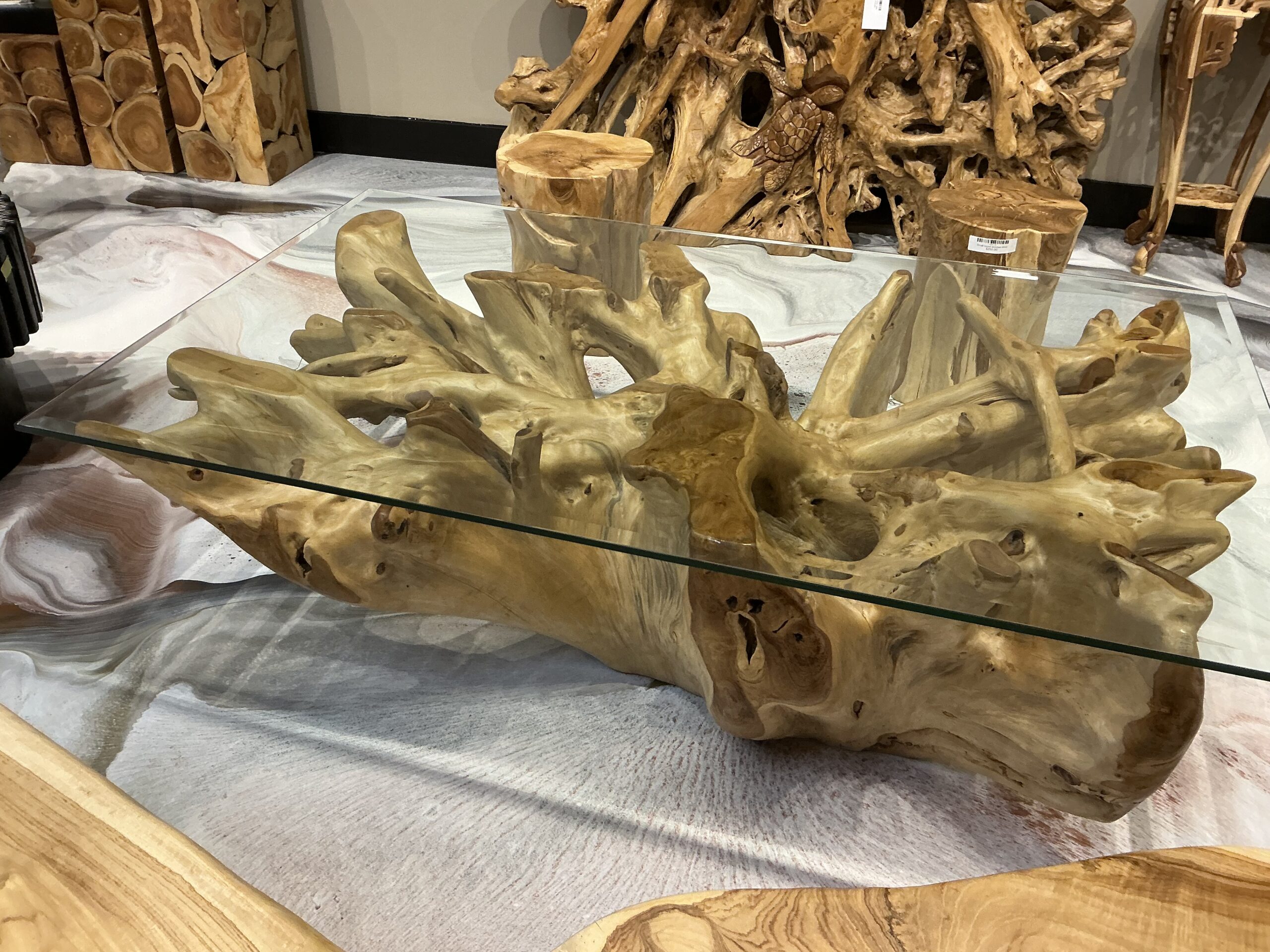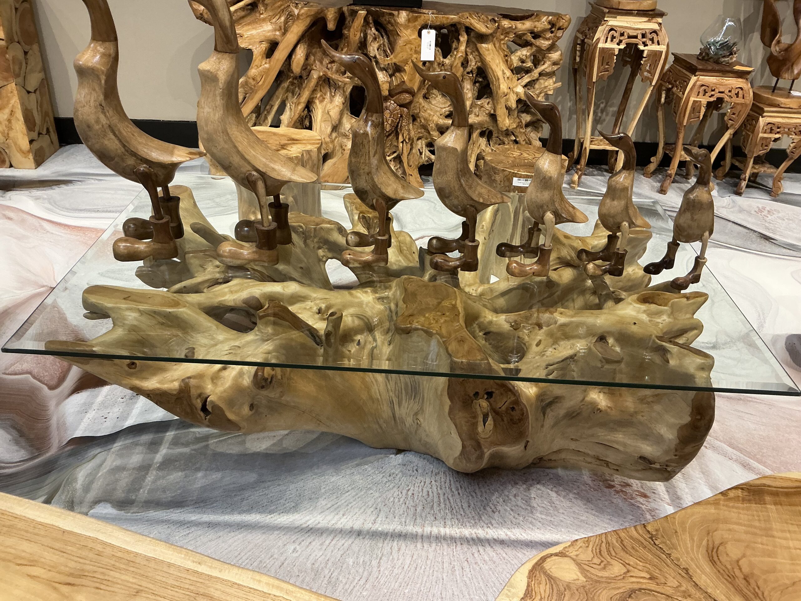 Glass top coffee table with wooden base 002