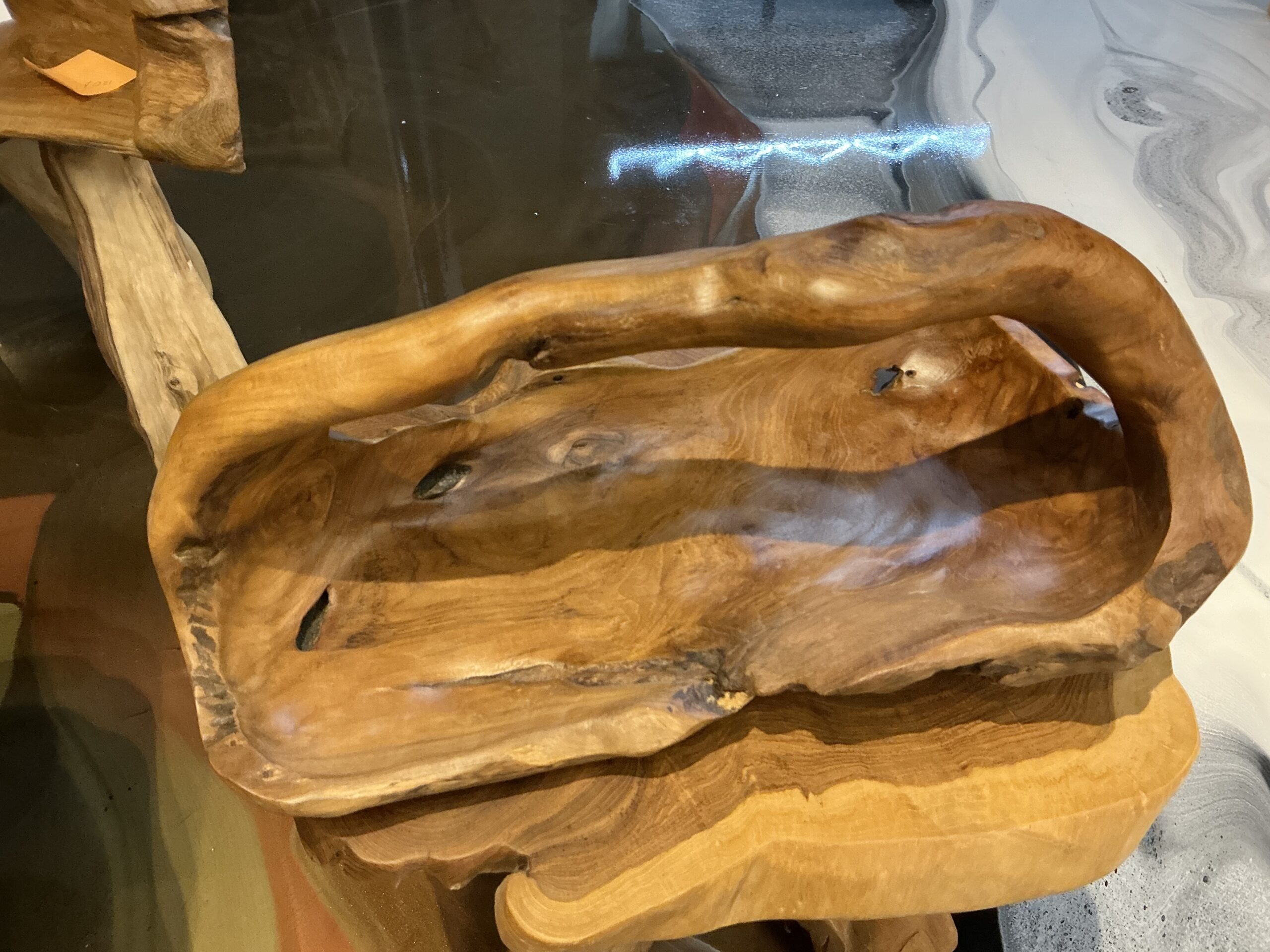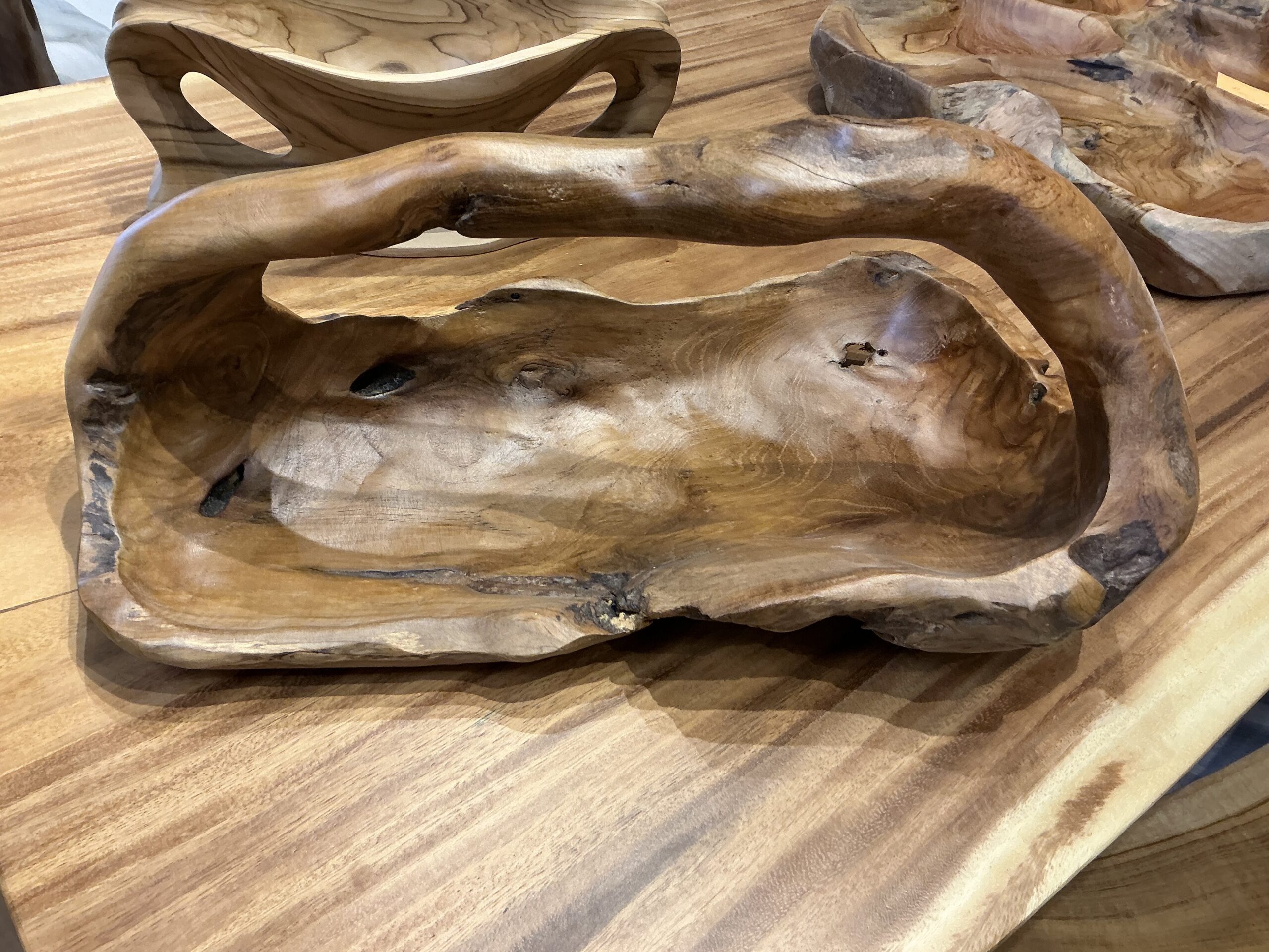 Wooden bowl with top handle